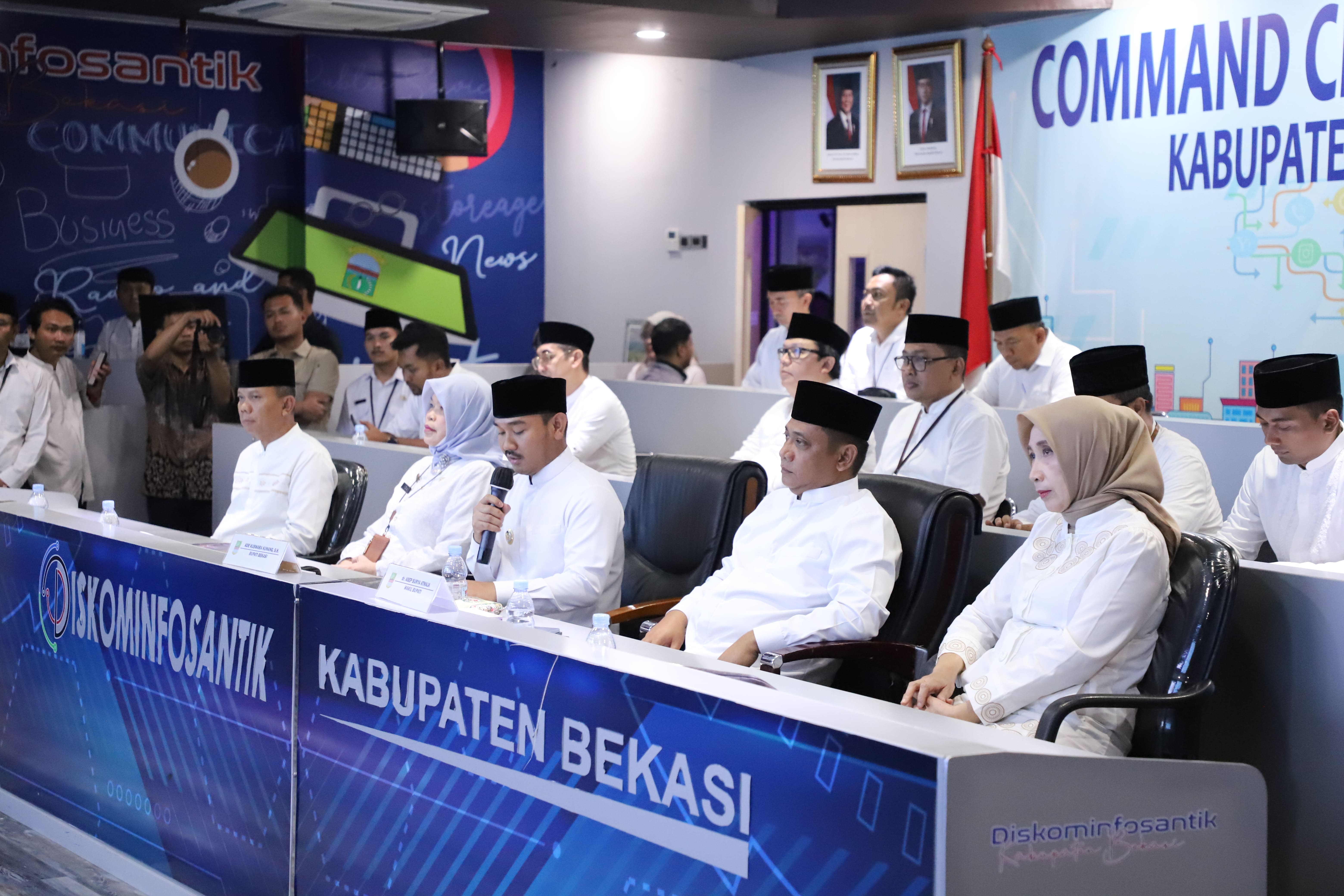 PELANTIKAN PPPK TAHAP II : Bupati Bekasi Ade Kuswara Kunang melantik Pegawai Pemerintah dengan Perjanjian Kerja (PPPK) Tahap II secara virtual, di Ruang Command Center, Gedung Diskominfosantik Kabupaten Bekasi, Cikarang Pusat. Senin, (1/09/2025). Endar Raziq B/Diskominfosantik.