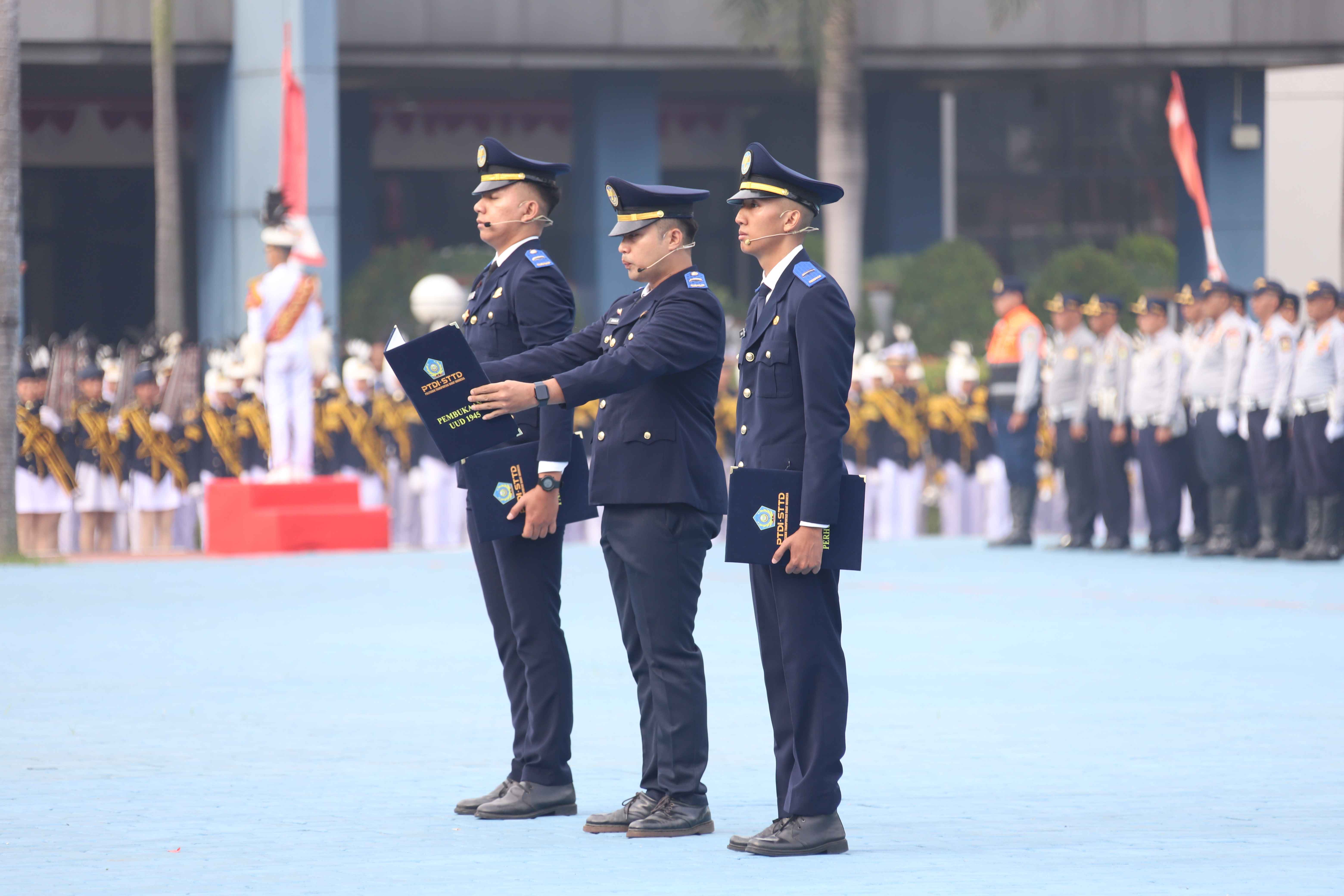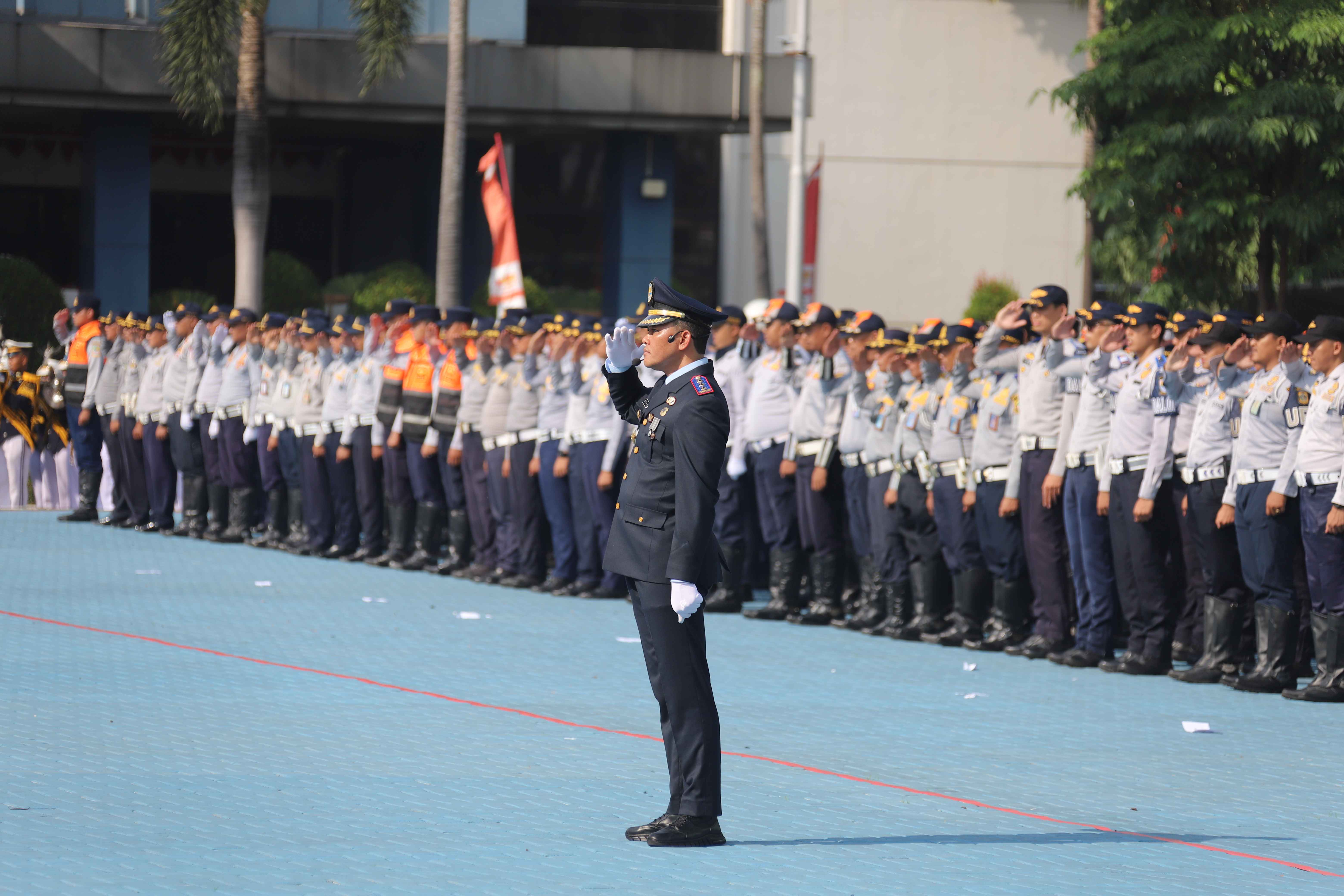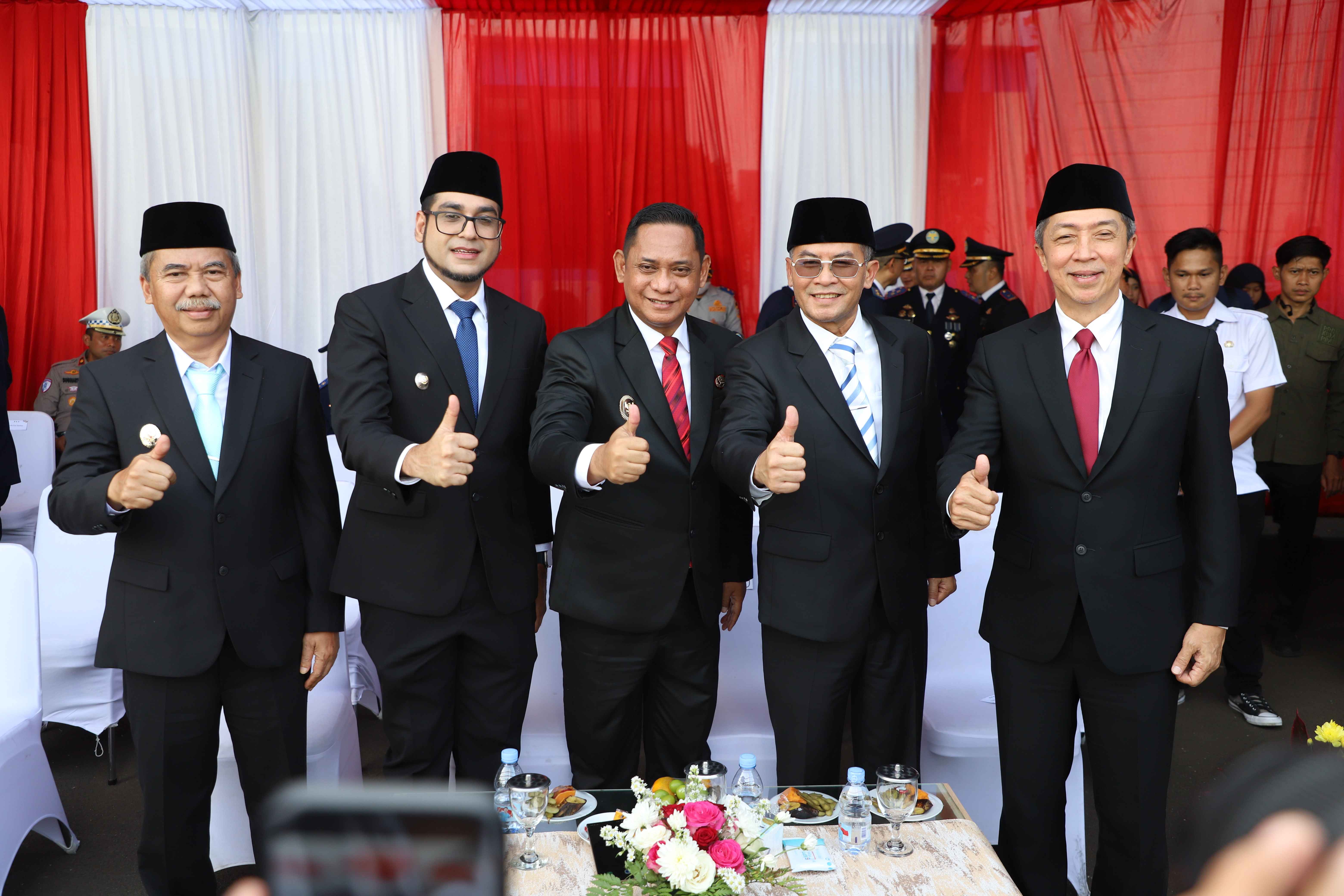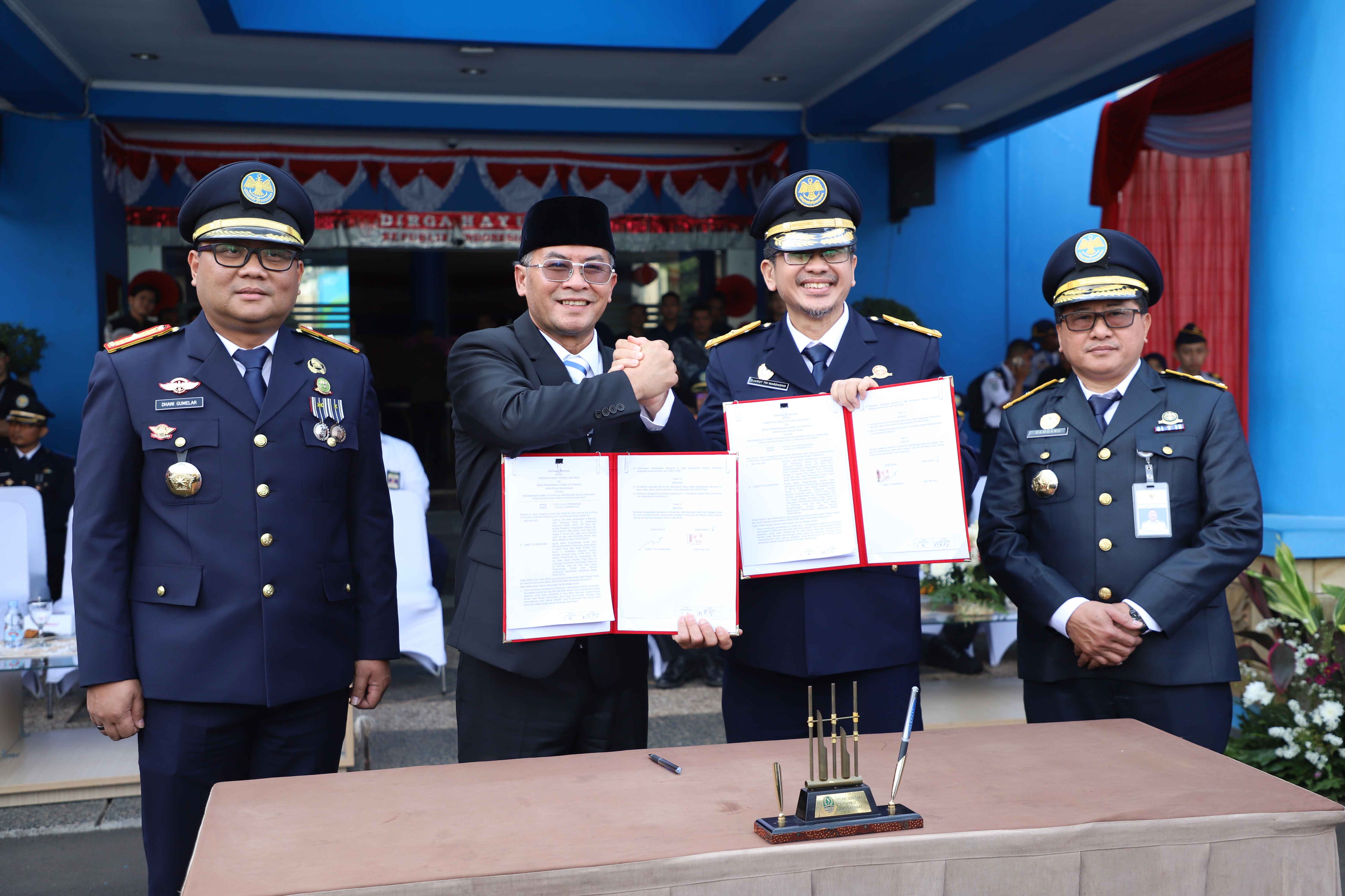 HARHUBNAS : Wakil Bupati Bekasi Asep Surya Atmaja mendampingi Wakil Gubernur Jabar Erwan Setiawan pada upacara peringatan Hari Perhubungan Nasional (Harhubnas) Tingkat Jawa Barat di Lapangan Sekolah Tinggi Transportasi Darat (STTD), Kecamatan Cibitung. Pada Sabtu, (20/09/2025). FOTO : Endar Raziq B/Diskominfosantik.