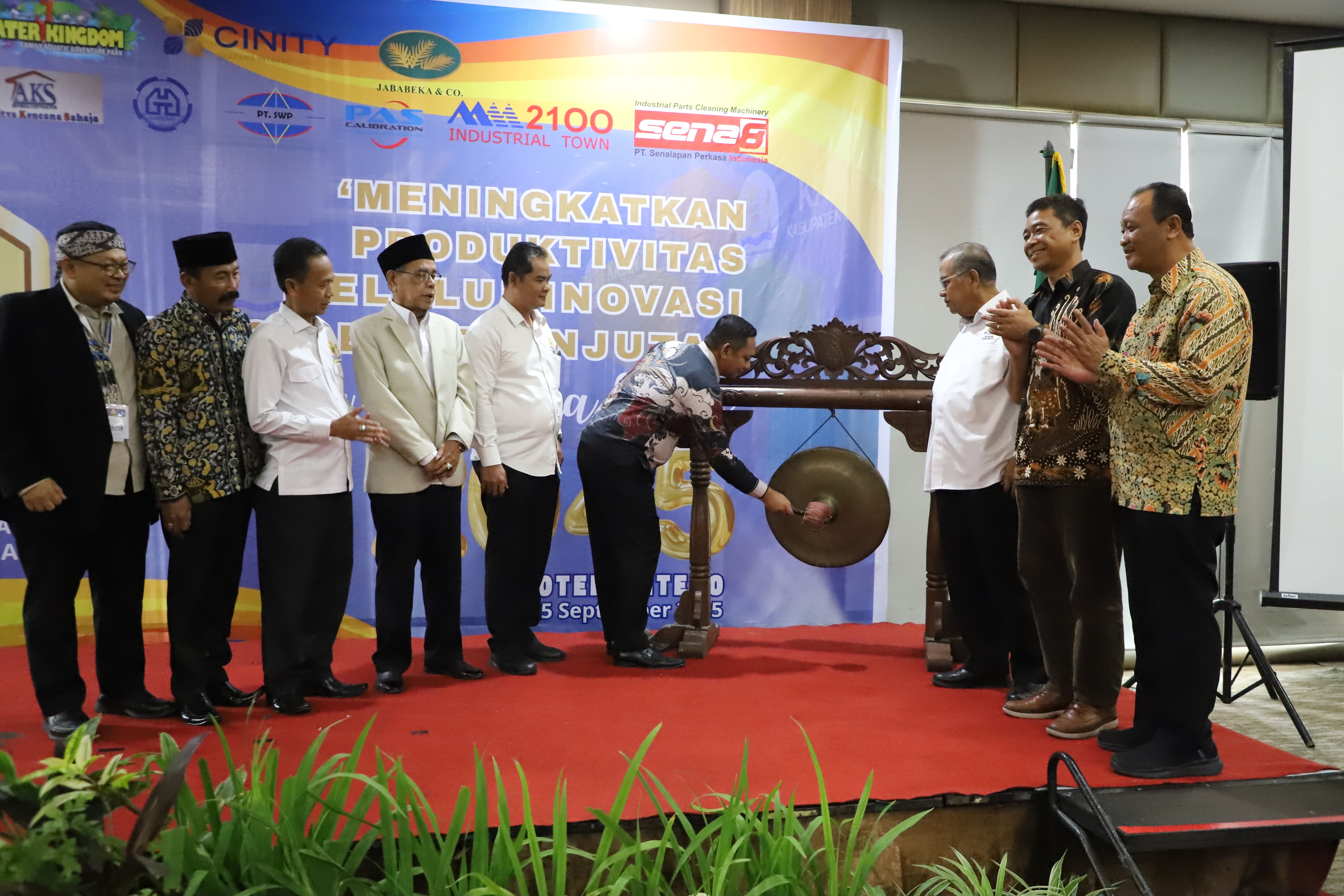 INOVATIF : Wakil Bupati Bekasi Asep Surya Atmaja, menghadiri acara Kamar Dagang dan Industri (KADIN) Kabupaten Bekasi, bertema peningkatan produktivitas melalui inovasi yang berkelanjutan menuju Indonesia Emas 2045. Bertempat di Hotel Antero Jababeka, Cikarang Utara. Kamis, (25/09/2025). FOTO : Endar Raziq B/Diskominfosantik.