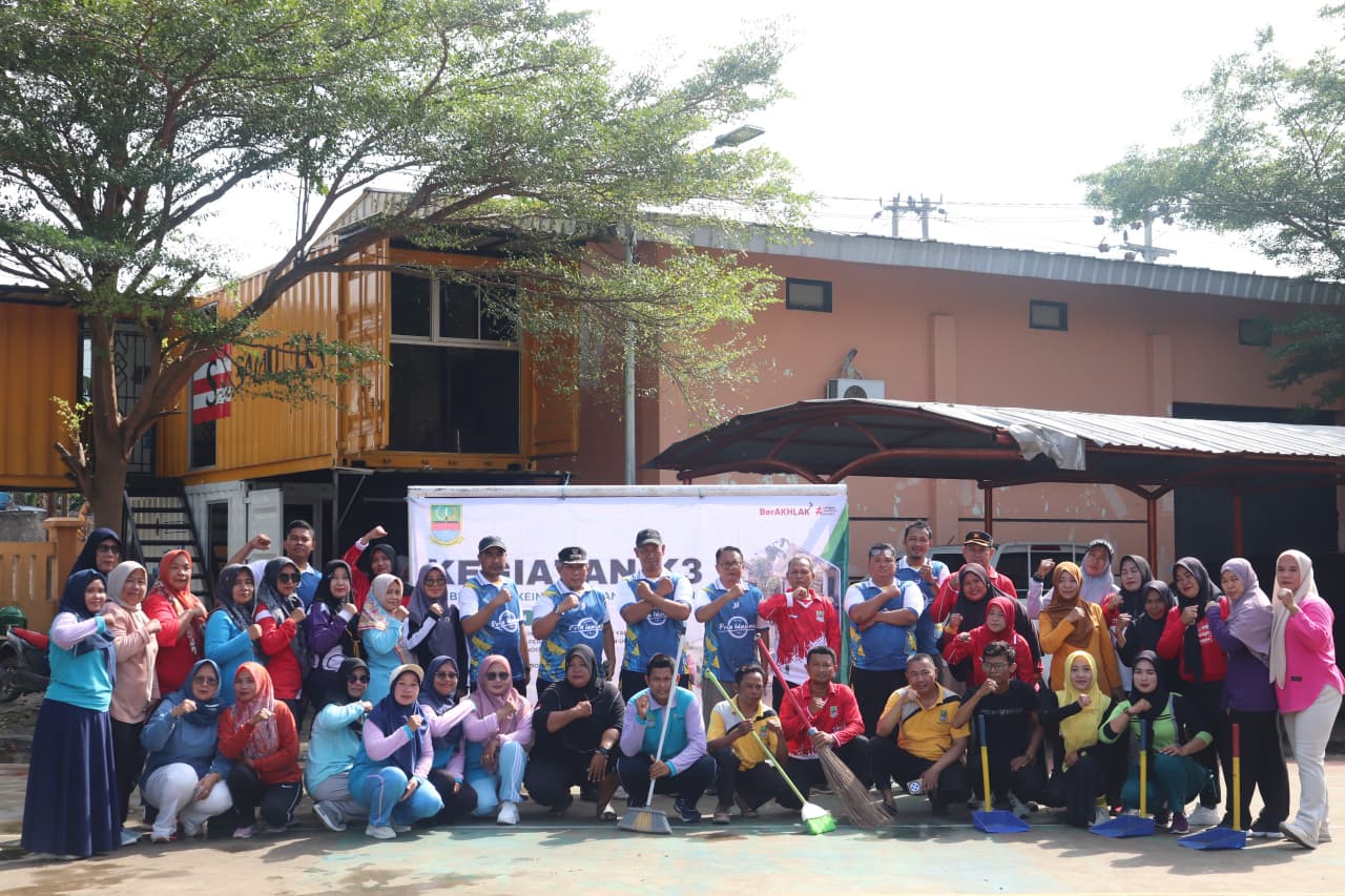 CIKARANG TIMUR - Menjelang arus mudik tiba, Unit Pelaksana Teknis Daerah (UPTD) Kebersihan Wilayah 5 Dinas Lingkungan Hidup (DLH) Kabupaten Bekasi melaksanakan kegiatan pembersihan halaman PT. IBU yang akan dijadikan lokasi posko mudik (check point), Kecamatan Cikarang Timur, pada Kamis (13/04/2023).
