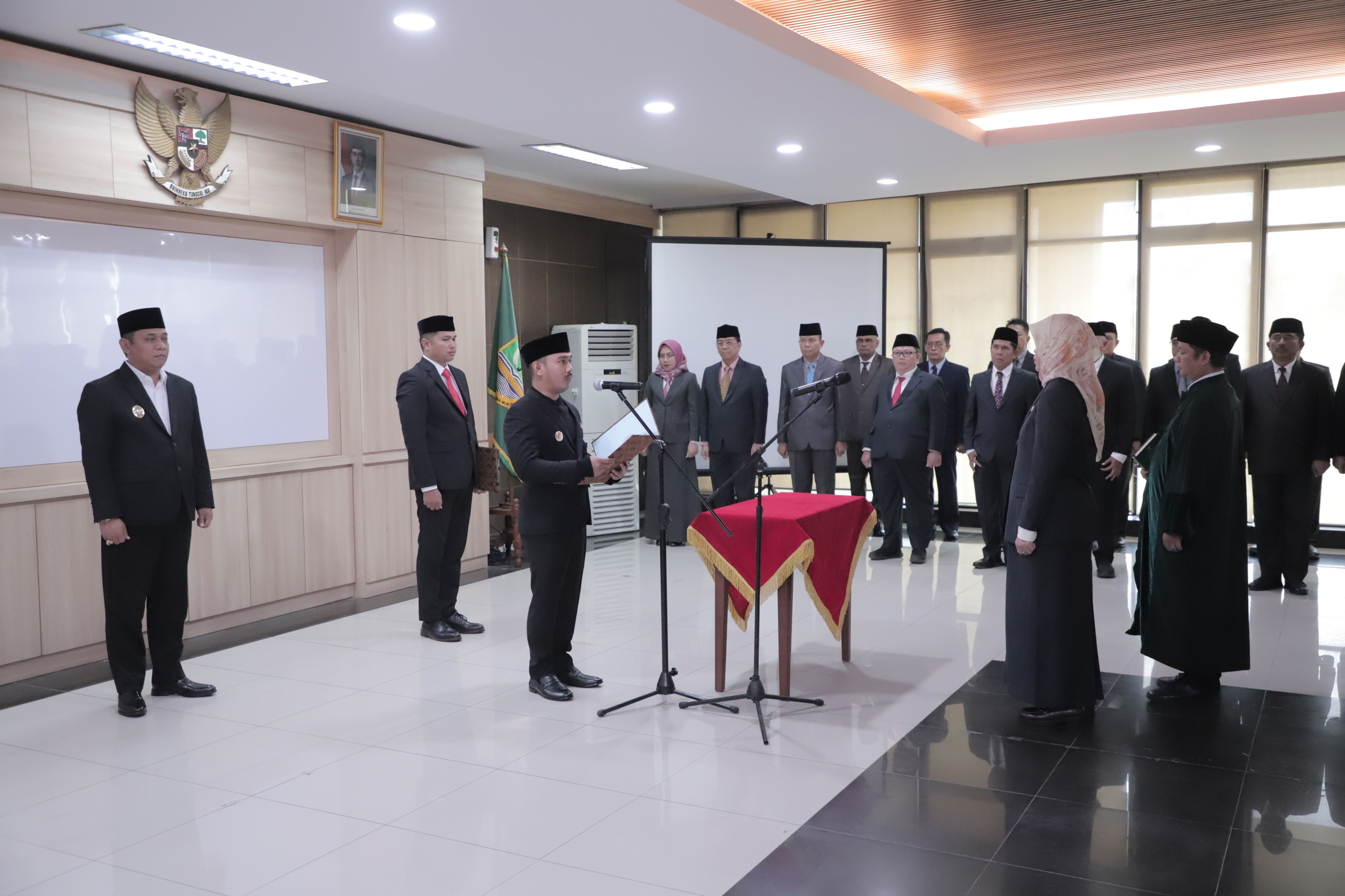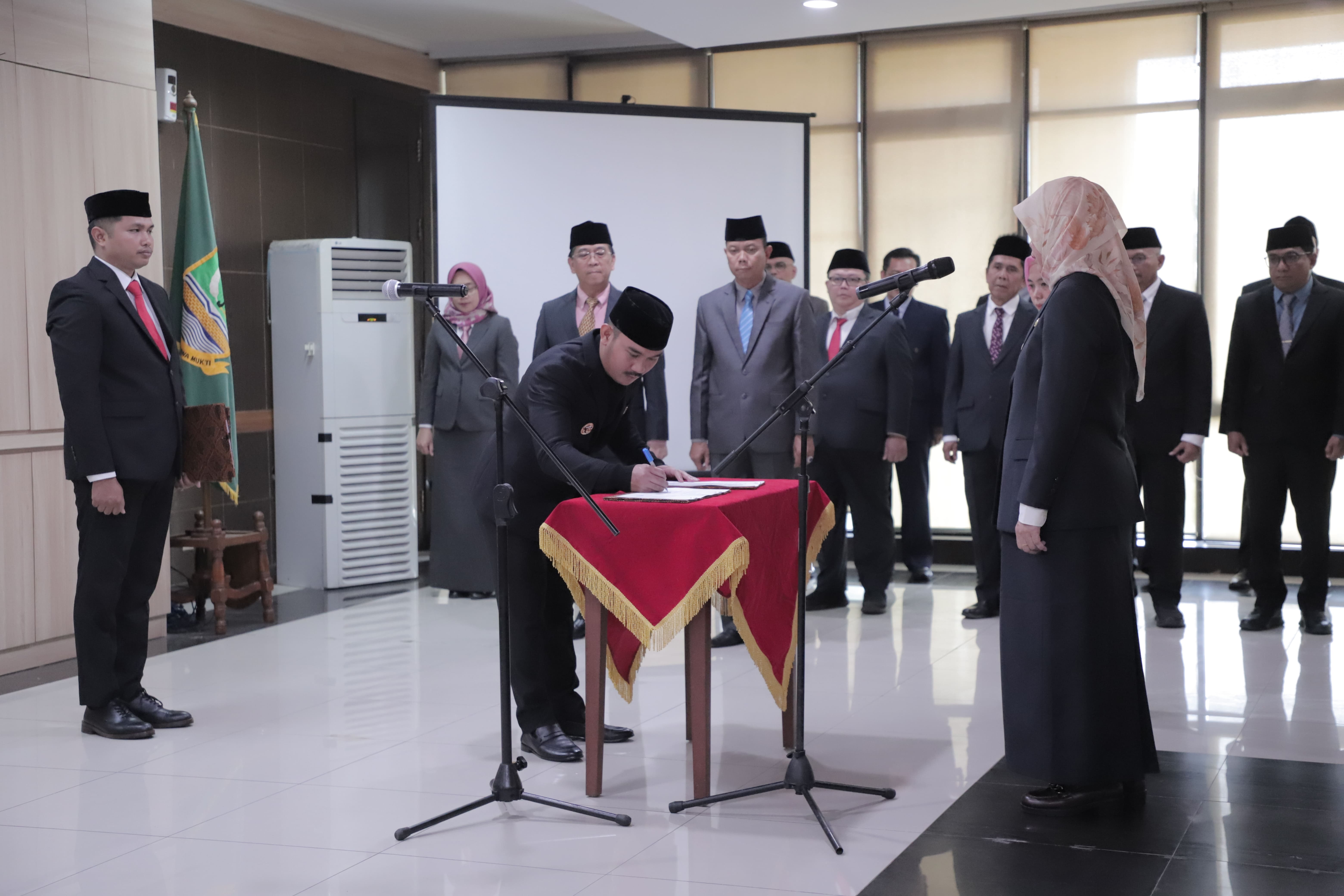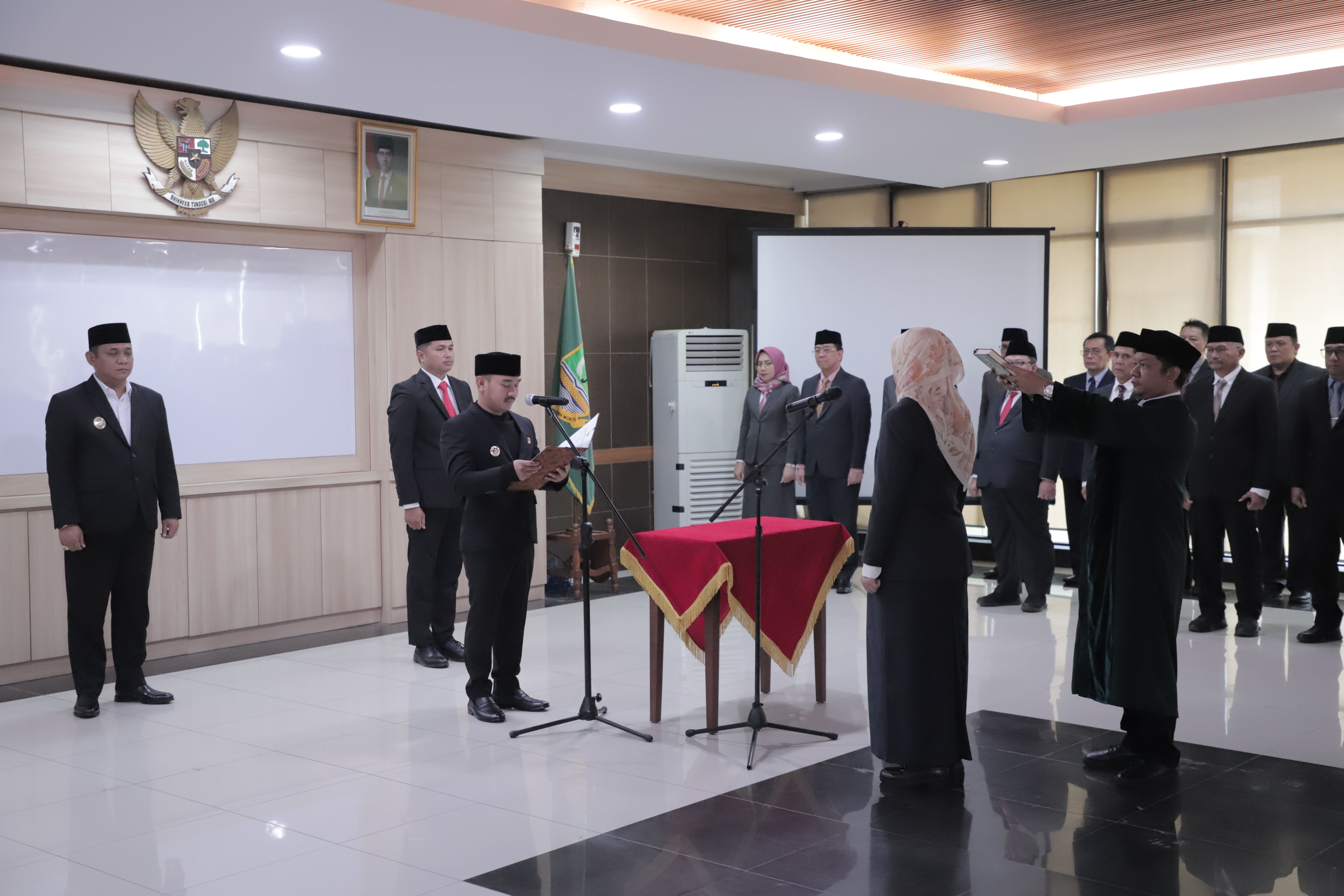 PELANTIKAN : Bupati Bekasi Ade Kuswara Kunang melantik Ida Farida sebagai Penjabat Sekretaris Daerah Kabupaten Bekasi, di Ruang Rapat Raden KH. Ma'mun Nawawi, Gedung Bupati, Cikarang Pusat. Senin, (15/09/2025). FOTO : Endar Raziq B/Diskominfosantik.