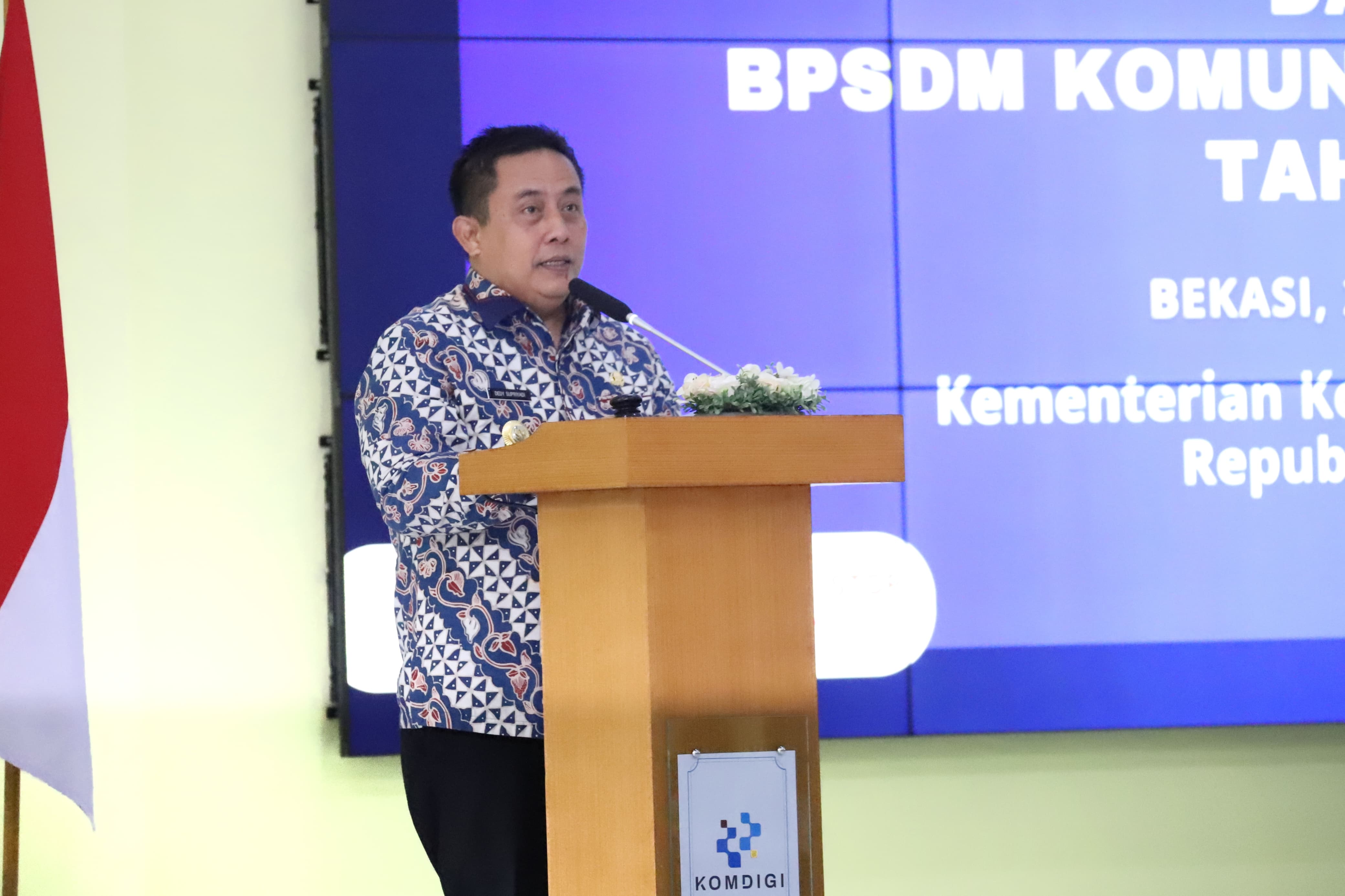 LAUNCHING: Pj. Bupati Bekasi Dedy Supriyadi mendampingi Wakil Menteri Komunikasi dan Digital RI, Angga Raka Prabowo bersama Plt. Kepala Balitbang Kemkomdigi Hary Budiarto, Meluncurkan Program Digital Talent Scholarship (DTS) dan Indeks Masyarakat Digital Indonesia (IMDI) BPSDM Komdigi. Bertempat di Gedung BPPTIK Kementerian Komunikasi dan Digital, Jababeka Cikarang Utara. Jum'at, (24/01/2025). Foto: Endar Raziq/Newsroom Diskominfosantik