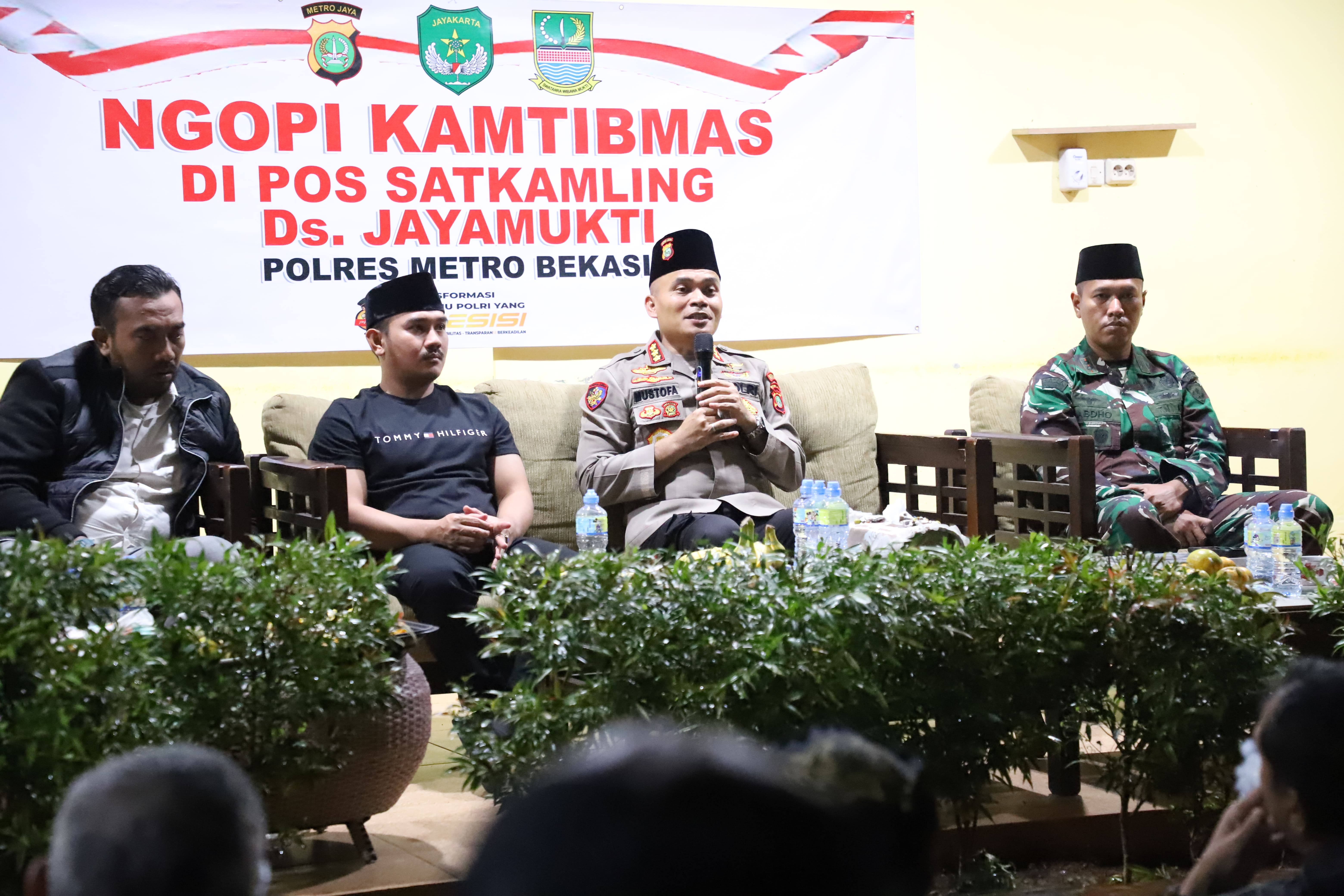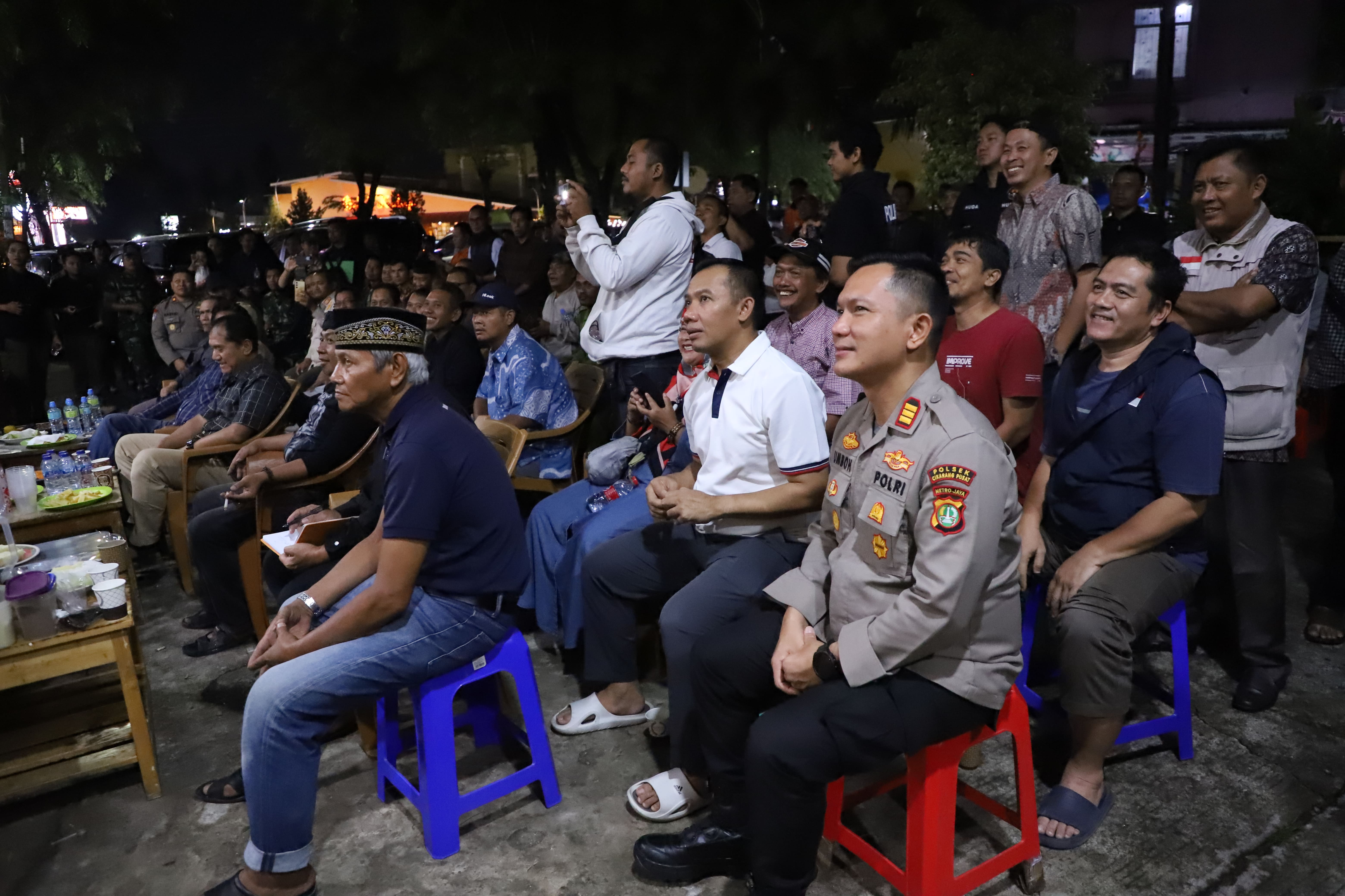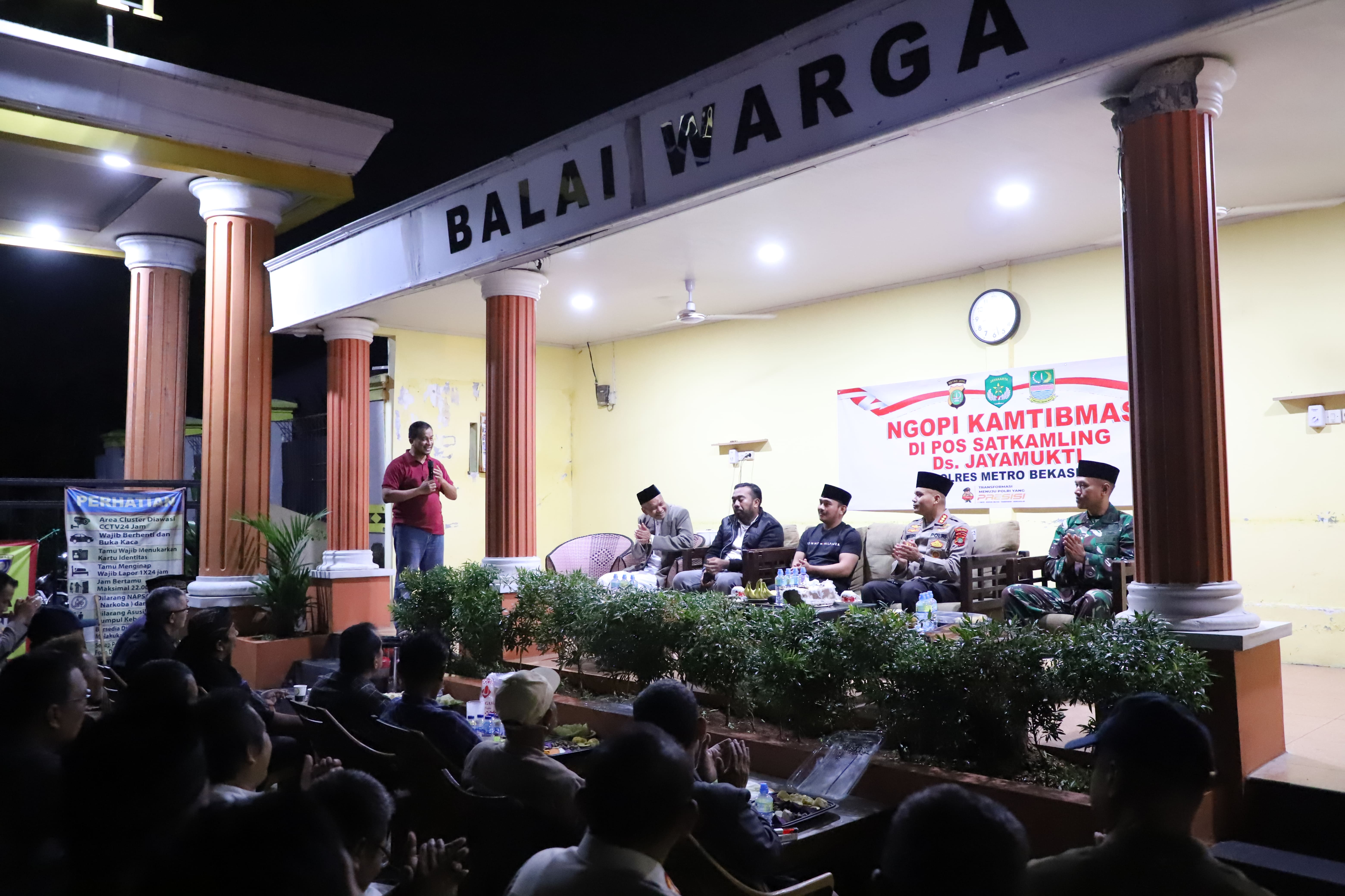 NGOPI KAMTIBMAS : Bupati Bekasi Ade Kuswara Kunang silaturahmi sekaligus dialog dengan warga bertajuk Ngopi Kamtibmas, di Balai Warga Pos Satkamling Cluster D’menjangan, RT 06 RW 09 Desa Jayamukti, Kecamatan Cikarang Pusat, Jumat (12/09/2025) malam. Endar Raziq B/Diskominfosantik